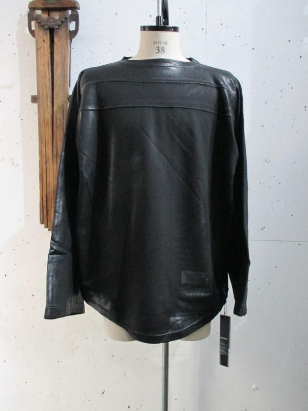 JULIUS_7(ユリウス) COATED COTTON SWEAT クルーネック トレーナー (BLACK) 917CUM2