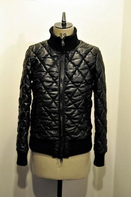 AKM(エイケイエム) shirring stitch dia track jacket riba lamb ダイヤステッチ トラック レザージャケット (beige/black) B241 RL02